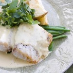 The fish is served with lemony hollandaise, which is one of my favourite accompaniments for fish. The plate also has crispy potato wedges and greens. Yummy!