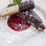 The popular poached pears remain on the menu, and the chocolate slot is taken up by a totally decadent chocolate and orange ganache tart.